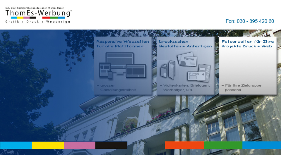 RESPONSIVES INTERNET DESIGN UND PROGRAMMIERUNG + PRINTSACHEN - ThomEs-Werbung, Helmstedter Straße 26, 10717 BERLIN, 3. ETAGE VH